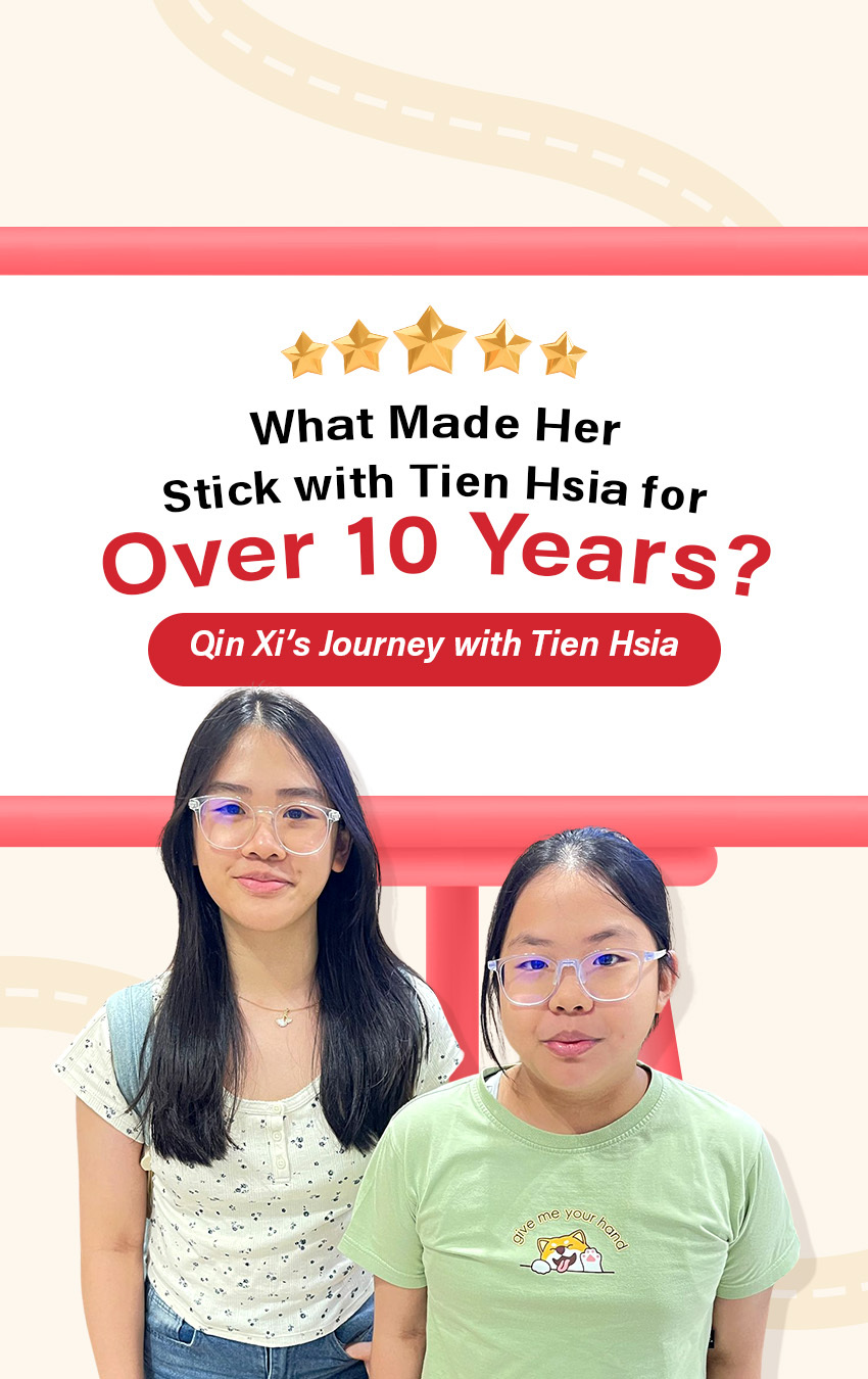 Qin Xi has been with Tien Hsia for 11 years, starting from Nursery 1 and continuing through to Secondary 2. Tien Hsia was the top choice due to its strong reputation and MOE-aligned syllabus. Over the years, especially during P5 and P6, I noticed that Qin Xi’s vocabulary, Chinese foundation, and exam preparation were far ahead of her peers who attended tuition at other centres. The teachers at Tien Hsia are supportive and considerate, always providing the guidance Qin Xi needs. With structured learning and regular revisions, Tien Hsia created an environment conducive to growth. The results convinced me to register both my children for Chinese education at Tien Hsia.